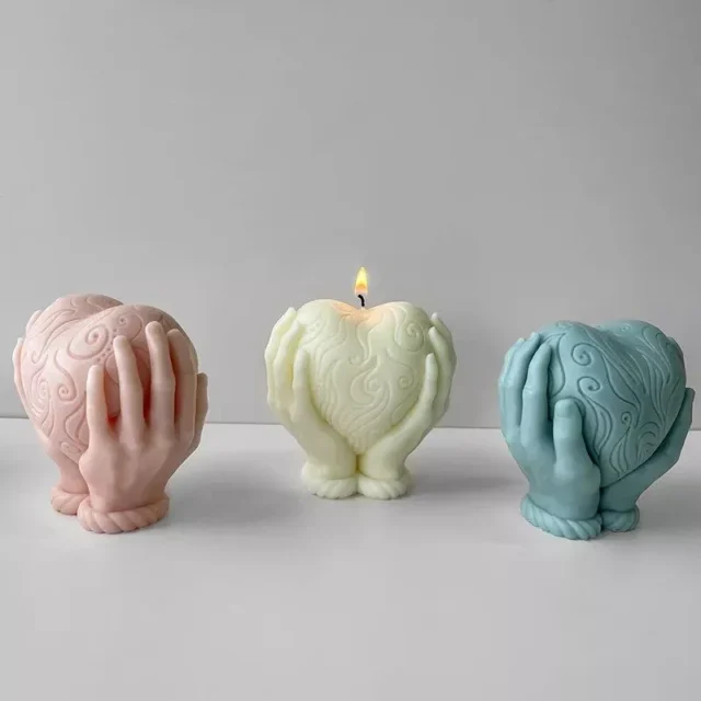 Hands Holding Hearts Silicone Mold 3D Carving Love Candle Plaster Epoxy Mold Kit DIY Heart-shaped Baking Tool Wedding Decoration