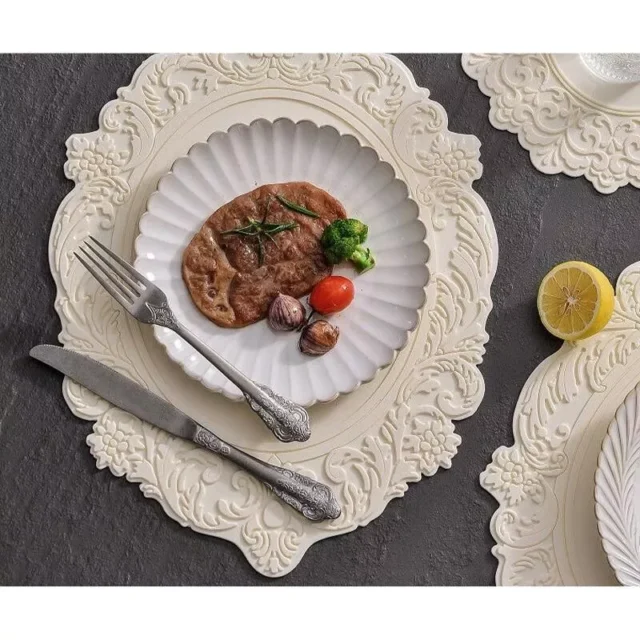 Introducing our Eco-Friendly Silicone Lace Placemat – a perfect blend of functionality and elegance for your dining table. Crafted with an eye for style and a conscience for the environment, this placemat is designed to elevate your dining experience while ensuring sustainability. Its modern, flower-embossed design adds a touch of sophistication to any meal, making it ideal for both everyday use and special occasions.