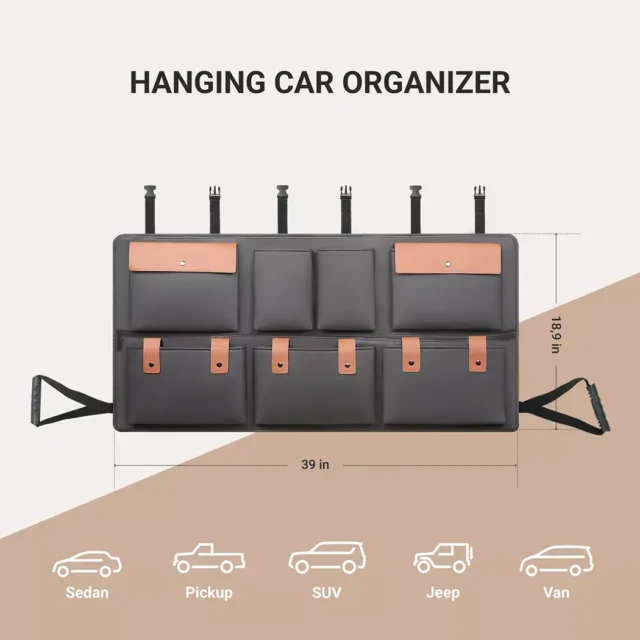 This trunk organizer is made of waterproof and durable eco-leather, which can be easily cleaned from dirt, dust, or liquids with a damp cloth.