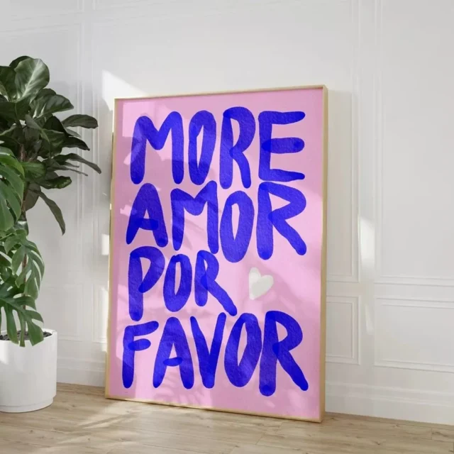 Our “More Amor Por Favor” poster is not just a piece of art; it’s a mantra for life. Designed to inspire more love and joy, it serves as a daily reminder of what truly matters. Ideal for living rooms, bedrooms, or any space that could use a splash of pink and a heartwarming message, this canvas painting is versatile. Its modern style seamlessly blends with both contemporary and eclectic decor, making it a special addition to your home.
