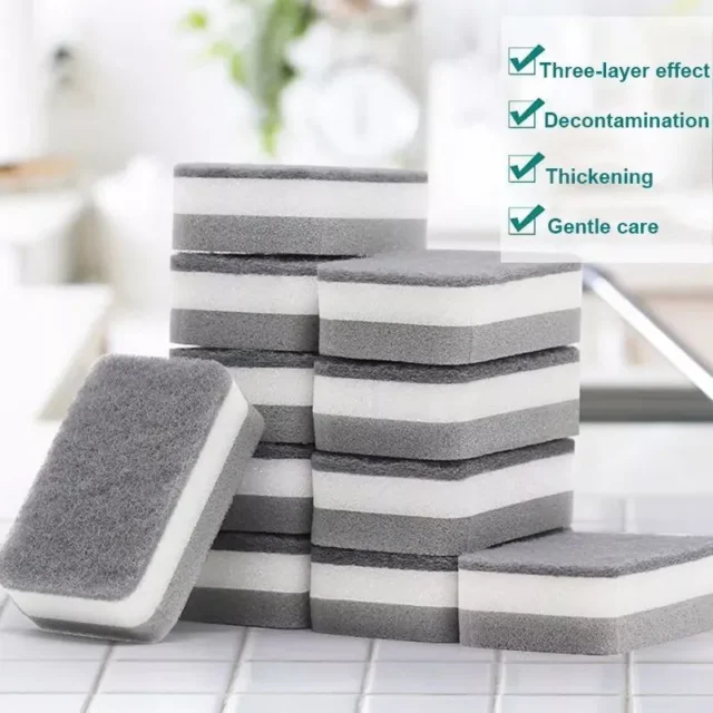 Perfect for daily use, these sponges come in handy for post-cooking clean-ups, during your routine dishwashing, or whenever your kitchen surfaces need a touch-up. They’re also versatile enough for bathroom maintenance, ensuring your whole home can benefit from their scrubbing prowess.
