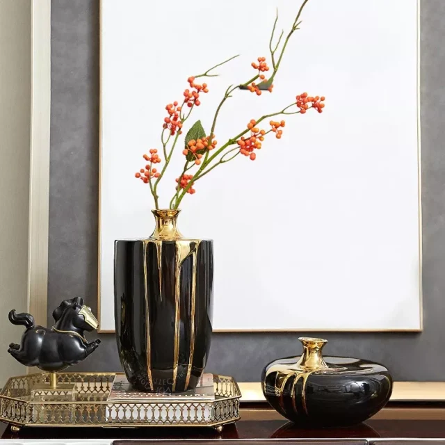 Elevate your home’s ambiance with our Modern Luxury Ceramic Vase, a perfect blend of sophistication and style. Designed to enhance any living space, this stunning piece is more than just a vase; it’s a statement of elegance. Its sleek black and gold design adds a touch of luxury to your living room, making it an ideal choice for those who appreciate the finer things in life.