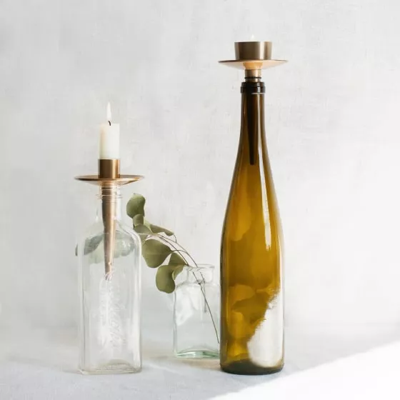 These compact bottle-held candle holders make great gifts. Just add a few nice candles!