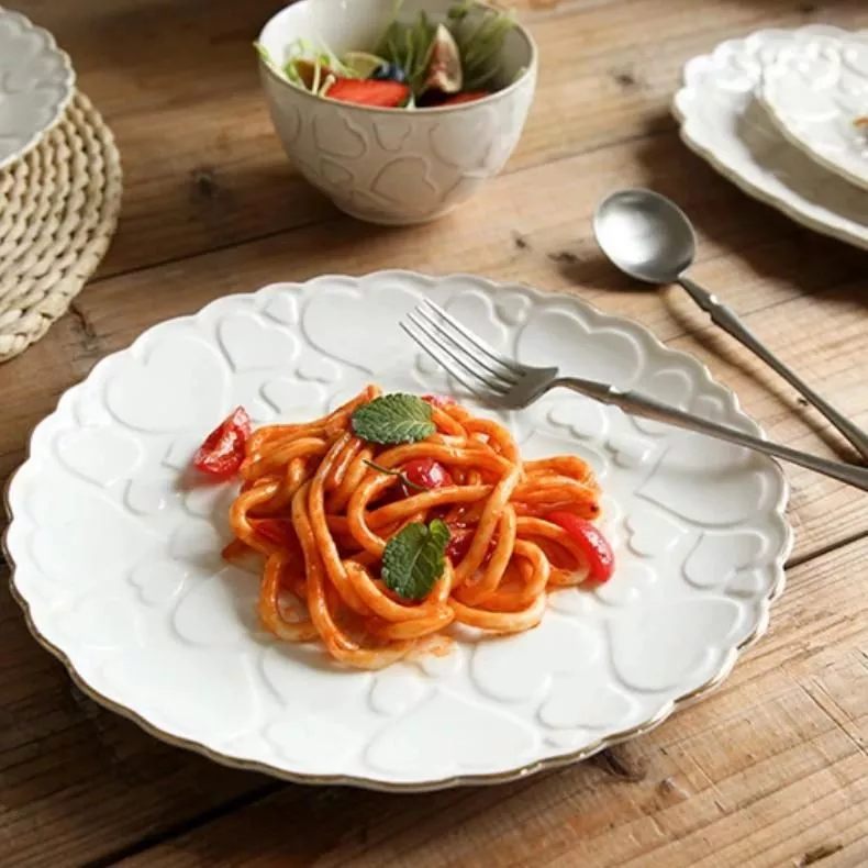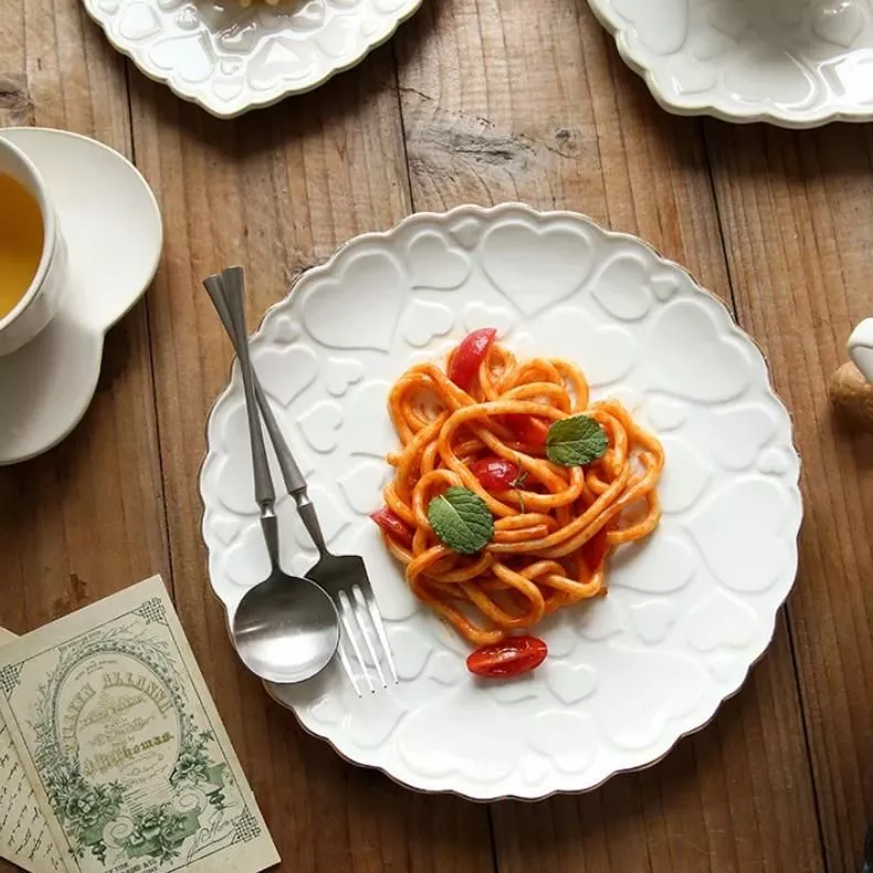 Our plate is more than just a dish; it’s a statement of elegance and love. Crafted with high-quality ceramic, it features a solid, clean white pattern that shines under any lighting. The heart shape is not only charming but also versatile, making it perfect for a variety of dishes from Western cuisine to delectable desserts. Its exquisite design makes it an ideal addition to your kitchen supplies or a thoughtful gift for someone special.
