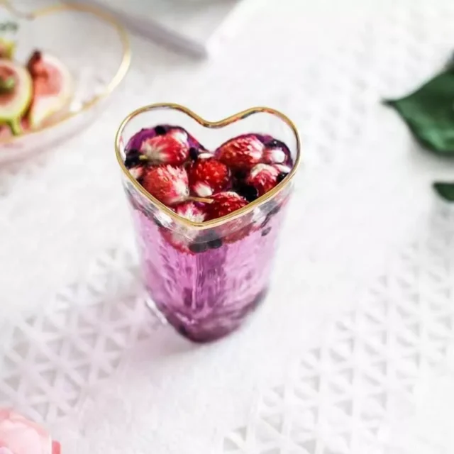 Introducing our Heart Shaped Glass Cup, a perfect blend of elegance and functionality. Designed to enchant with its delicate heart shape and luxurious gold rim, this set promises to elevate your dining experience. Crafted from premium crystal glass, each piece reflects a commitment to quality and style, making every meal a special occasion.