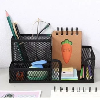 Stylish 3-Compartment Metal Pen Holder & Desk Organizer