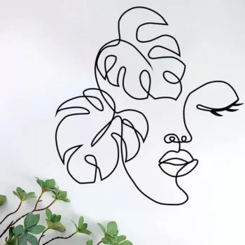 Elegant Minimalist Black Metal Woman Face Wall Art