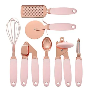 Elegant Rose Gold 7-Piece Kitchen Utensil Set with Silicone Handles