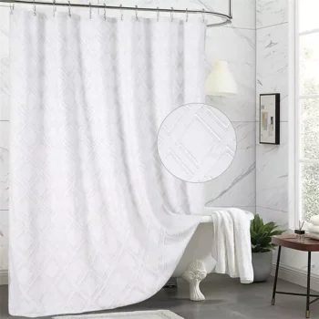 Elegant White Diamond Tufted Shower Curtain: Chic Farmhouse Style