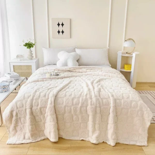 Our Flannel Fleece Throw Blanket is not just a blanket; it’s a blend of functionality and style. The modern heart pattern adds a touch of elegance, while the anti-pilling and portable features make it a practical choice for everyday use. Its warmth and softness are unmatched, making it a must-have for any household.