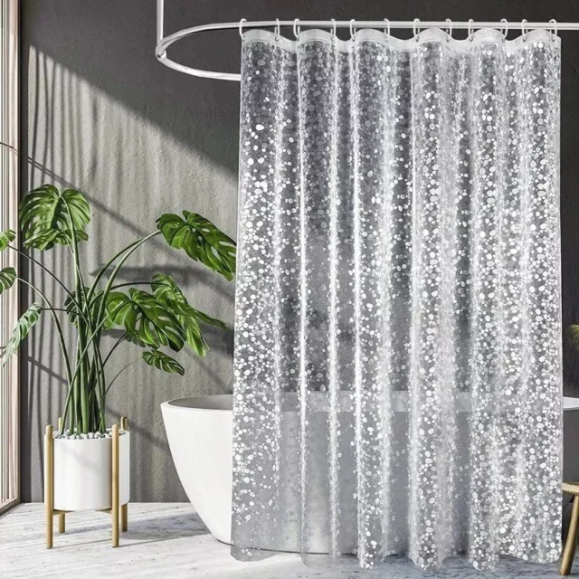 Our shower curtain stands out with its array of user-friendly features. Being waterproof, it efficiently prevents water splashes, keeping your bathroom neat and dry. The 12 rust-resistant metal grommets ensure durability and ease of use. Plus, its transparent nature allows you to keep an eye on your surroundings, providing an added level of safety, especially for families with children or the elderly.