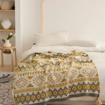Bohemian Geometric Knitted Blanket