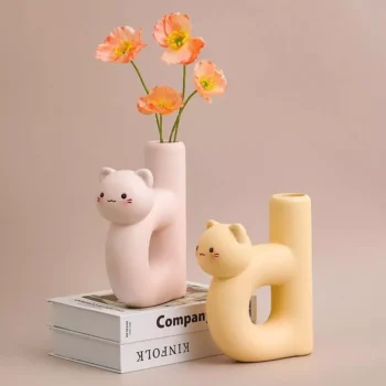 Charming Cat Letter D-Shaped Resin Vase