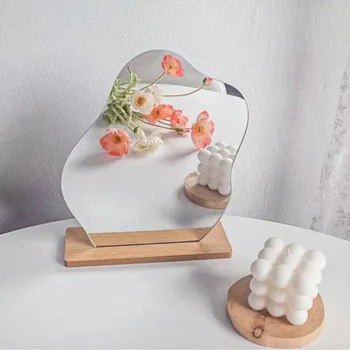 Chic Irregular Acrylic Mirror with Wooden Stand